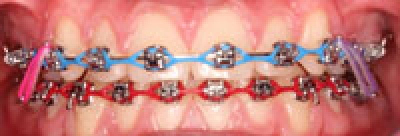 Blokjesbeugel/Vaste beugelOp iedere afzonderlijke tand of kies worden slotjes, ook wel ‘brackets’ genoemd geplakt. Ze staan in verbinding met elkaar door een soepele draad. De orthodontist stelt de draad regelmatig bij. Op deze manier wordt elke tand of kies op de juiste plek gezet. |